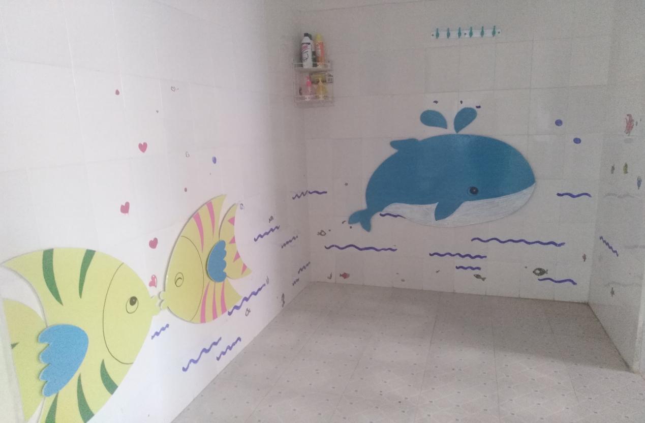 为了让孩子们拥有一个温馨舒适的生活环境,庄口中心幼儿园全体教师充分利用午休和晚上时间加班加点,对寝室和厕所环境进行精心布置。教师对此次活动十分重视,分年级组构思设计、收集材料,利用硬纸板、细绳、树枝、纽扣、松树子、纸杯、CD碟、塑料瓶等变废为宝,巧妙而富有创意的布置,给孩子们美的熏陶和艺术的启迪。