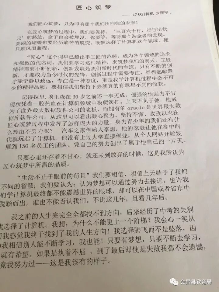 【用书滋养心灵,用语言表达情怀】会昌职校"喜迎党的十九大,做最美中职生"征文比赛